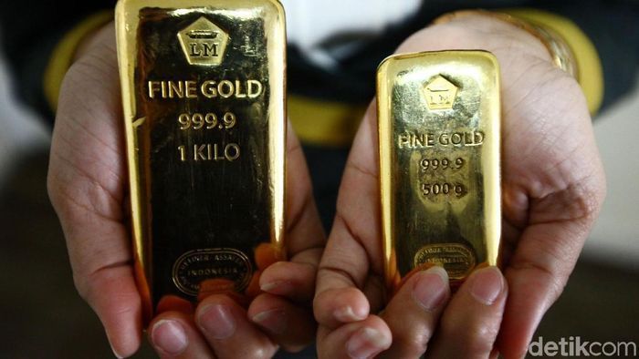 Harga emas Antam hari ini dijual Rp 994 ribu per gram, atau turun Rp 2.000 per gram dibanding harga pada akhir pekan kemarin di Rp 996 ribu per gram.