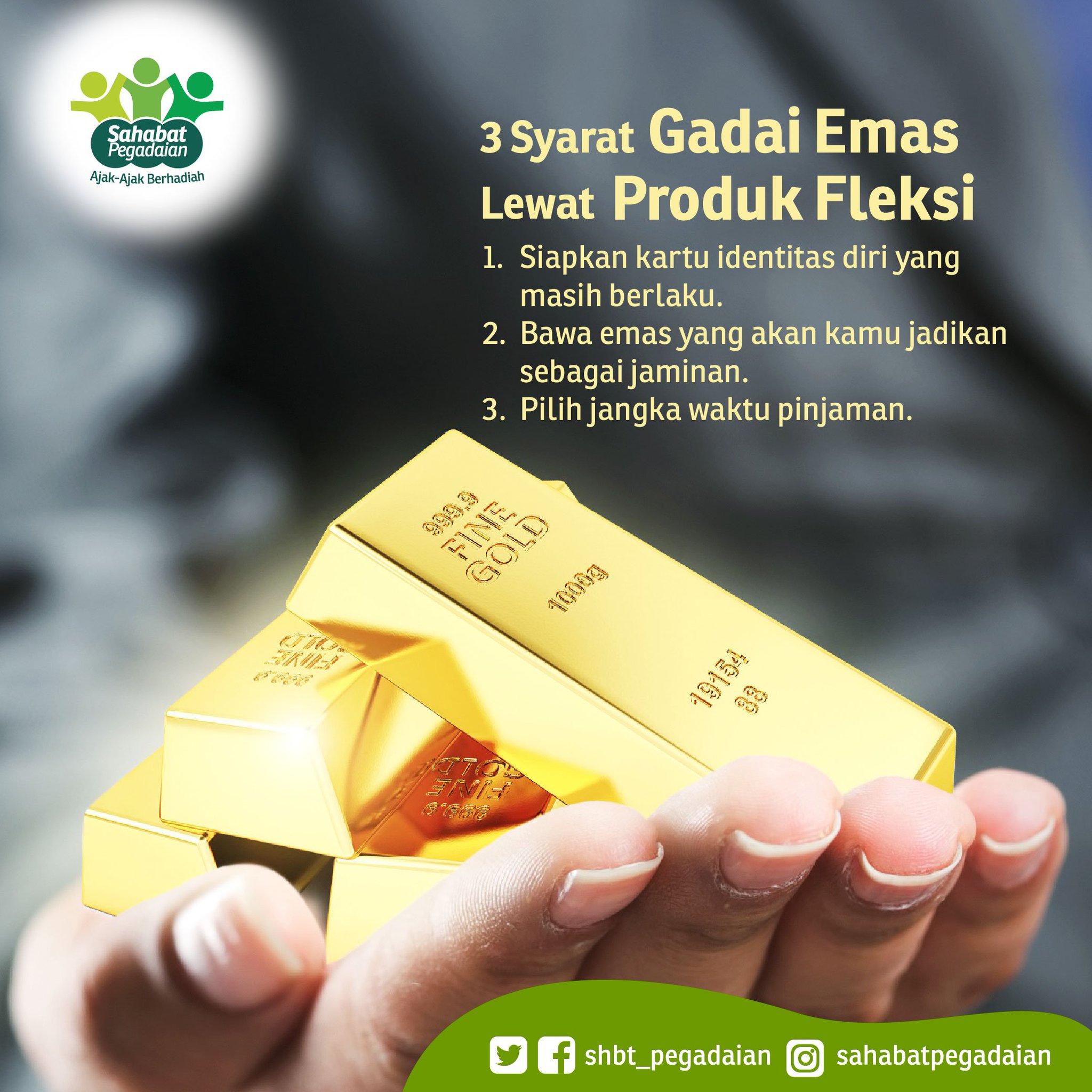 Apa itu Gadai Emas Angsuran Syariah? Gadai Emas Angsuran Syariah adalah produk Pegadaian untuk memberikan pinjaman dana tunai dengan jaminan perhiasan (emas dan berlian). Pinjaman dapat diangsur melalui proses yang mudah dan sesuai syariah. Mengapa MemilihGadai Emas Angsuran Syariah? Keunggulan dari Gadai Emas Angsuran Syariah