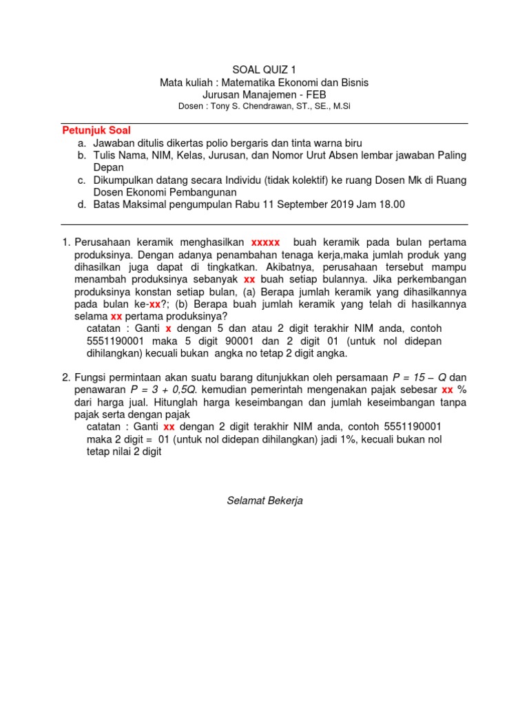 Contoh soal matematika bisnis dan jawabannya. Soal : Pembaharuan adalah rasionalisasi dan kontekstualisasi atau dapat disebut juga sebagai proses ... Bahan mentah itu kita jumpai pula dalam contoh dan teladan yang pernah diberikan oleh ... dalam perkembangan ilmu, filsafat, dan sastra55. Selain itu, pengaruh India juga terlihat dalam bidang kedokteran, ilmu matematika, dan astronomi56. 08-02-2021 · Soal TOEIC [+Kunci Jawaban] 2021 - Apa itu Tes TOEIC? TOEIC (Test Of English for International Communication) merupakan ujian bahasa inggris berstandar dan diakui secara internasional. TOEIC digunakan dalam menilai kemampuan seseorang dalam berkomunikasi dilingkungan professional yang berbahasa inggris. Aug 12, 2021 · Contoh Soal BEP – Halo sobat dosenpintar.com kembali lagi penulis berbagi artikel yang kali ini akan membahas tentang Contoh Soal BEP, meliputi Rumus BEP, Konsep Break Even Point, Pengertian BEP, Faktor Pendongkrak BEP, Contoh Kasus BEP dan Penyelesaian dan Cara Menurunkan BEP. Nov 28, 2018 · Trigonometri adalah sebuah cabang matematika yang berhadapan dengan sudut segitiga dan fungsi trigonometrik seperti sinus, cosinus dan tangen. Dibawah ini Anda dapat menemukan rumus trigonometri beserta contoh soal dan jawabannya. Trigonometri berasal dari bahasa Yunani: trigonon = tiga sudut dan metro = mengukur.