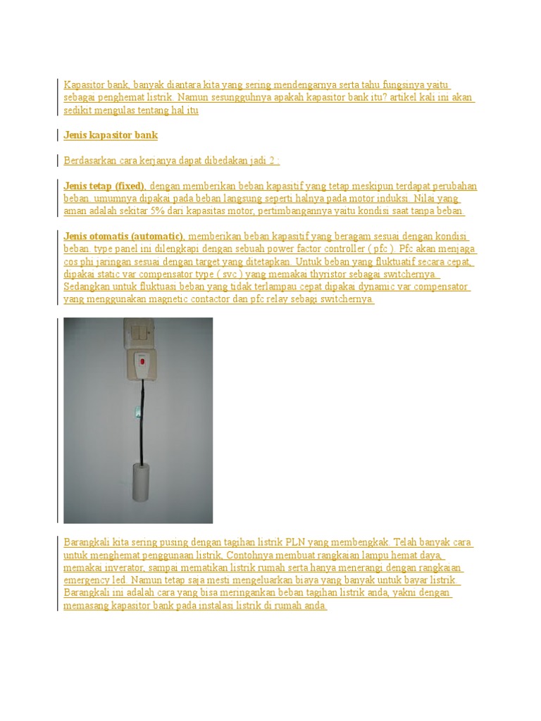 Jun 1, 2012 — Kapasitor Breaker digunkakan untuk mengamankan instalasi kabel dari breaker ke Kapasitor bank dan juga kapasitor itu sendiri.