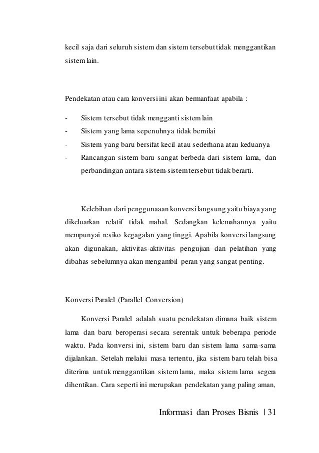 Pengertian Analisa Proses Bisnis merupakan suatu kumpulan pekerjaan yang saling terkait untuk menyelesaikan suatu masalah tertentu.Dimana Analisa atau anilis adalah suatu kegiatan yang dimulai dari proses awal didalam mempelajari serta mengevaluasi suatu bentuk permasalahan (case yang ada).Proses merupakan urutan pelaksanaan atau kejadian yang terjadi secara alami atau didesain, mungkin ... PDF means Portable Document Format. To browse PDF files, you need Adobe Acrobat Reader. It lets you view and print PDF files on a variety of hardware and.... PDF means Portable Document Format. To browse PDF files, you need Adobe Acrobat Re... 8 Tahapan/siklus analisis proses bisnis (lanjutan) 3. Pelaksanaan meliputi operasional, monitoring, maintenance Dalam tahap inilah ujian sebenarny dari sistem ...