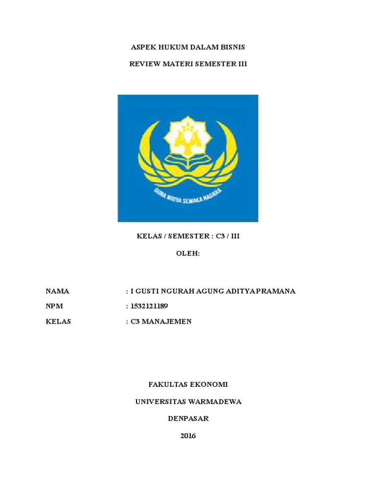 Materi hukum bisnis pdf. ide bisnis serta memahami jenis-jenis bentuk bisnis. B. URAIAN MATERI 1. Memahami Pengertian dan Tujuan Bisnis Masa-masa pembangunan bisnis pada mulanya menjadi penting adanya, hal ini dikarenakan sebuah negara yang kuat perekonomiannya akan banyak ditopang oleh bisnis yang kuat juga. " Banyak ahli yang memberikan pengertian Secondary data were obtained from books and internet sites containing economics, Islamic business ethics, and CSR. The results of this study are 1) Islamic business ethics has basic axioms, namely ... Hukum Komersial (Hukum Bisnis) - Materi Perkuliahan. Posted by M. HAMIDI MASYKUR on March 26, 2014. Berikut adalah materi perkuliahan Pengantar Hukum Indonesia / Sistem Hukum Indonesia di Fakultas Hukum, Fakultas Ilmu Administrasi di Universitas Brawijaya : KOMERSIAL 1 - SILABI. KOMERSIAL 2 - HUKUM. # Desember 2020 Pagi2 aku dapet WA dari Kevin yang tanya gimana caranya hubungin rektor kampus. "Rektormu dan rektorku itu beda, Kevin. Aku nggak kenal dengan rektor yang baru ini.". Ternyata Kevin menunggak uang kuliah dan oleh bagian keuangan disuruh untuk menghubungi rektor kalo mau menunda pembayaran karena rektor yang ada wewenang untuk itu. Karena dekan Fakultas Hukum yang sekarang adalah dosen pembimbingku dulu, aku kasih alamat email dia supaya Kevin bisa tanya sendiri dan cari solusi ...