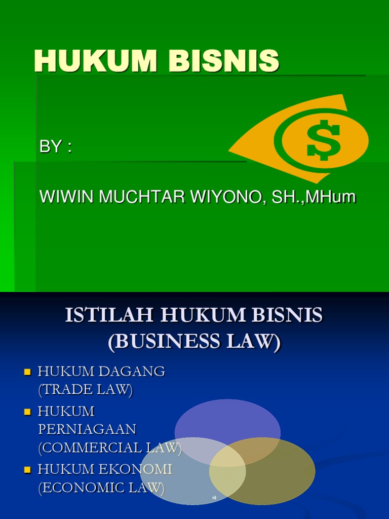 Mengenal Hukum Bisnis Prof. Dr. Nindyo Pramono, S.H., M.S. ebelum membahas lebih lanjut apa saja aspek-aspek hukum dalam kegiatan bisnis, ada baiknya kita mengetahui lebih dahulu apakah yang dimaksud dengan hukum, klasifikasi hukum, subjek hukum, objek hukum, dan sistematika KUH Perdata, sistematika KUHD dan pengertian hukum bisnis.