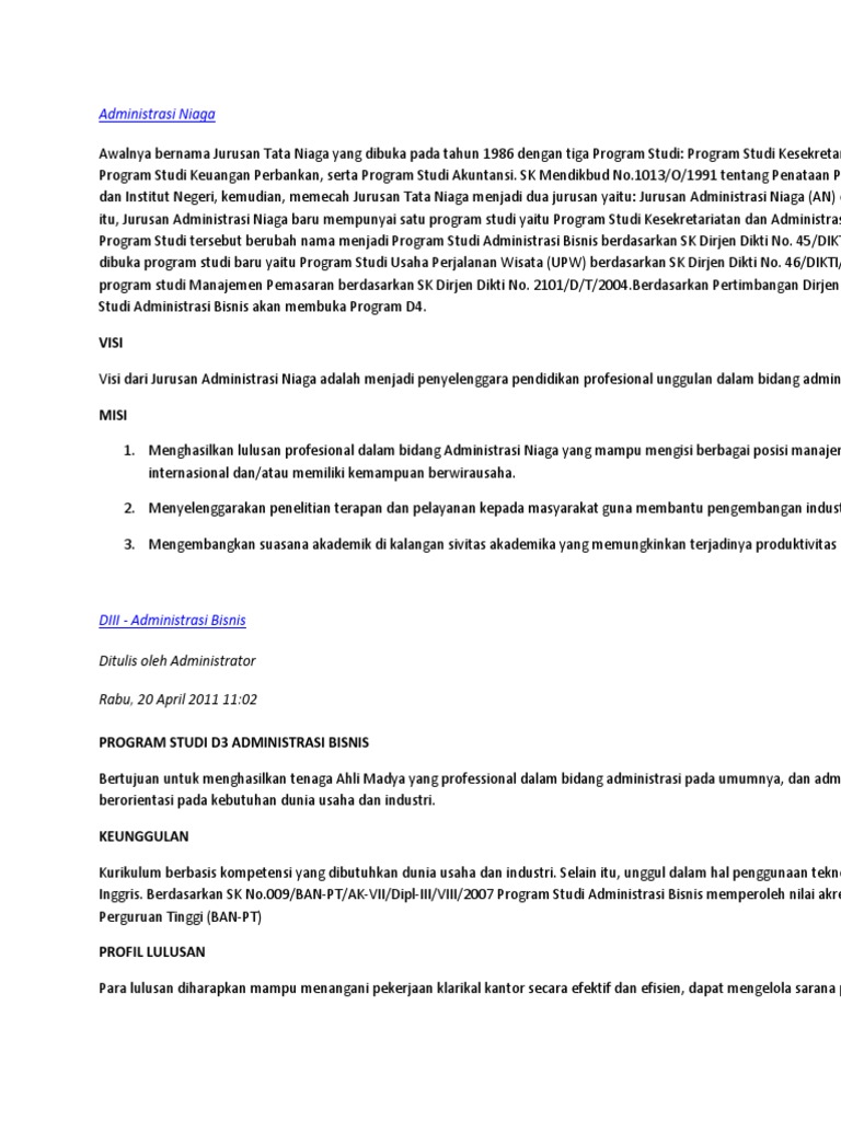 Prospek kerja ilmu administrasi bisnis. kumpulanjurnal.download Jan 01, 2022 · 20 Prospek Kerja Lulusan Statistika (2022) 27 Prospek Kerja Lulusan Psikologi (2022) 21 Prospek Kerja Lulusan Fisika (2022) 22 Prospek Kerja Lulusan Matematika (2022) √ Jurusan di UNMUL Samarinda (2022) 15 Prospek Kerja Lulusan Pariwisata (2022) Daya Tampung & Peminat SNMPTN Undangan UNDIP 2022; Prospek Kerja Lulusan Arsitektur (2022) Cari tahu informasi tentang jurusan Administrasi Publik (Administrasi Negara) di tahun 2022. Bagaimana kecocokanmu dengan jurusan ini, prospek kerjanya, serta cerita dari para mahasiswa dan alumni. Jun 26, 2021 · Lulusan ilmu psikologi punya prospek kerja sebagai human resource di perusahaan. Emang ngapain aja sih kerjaan HRD kantoran? Dalam dunia industri perusahaan dan organisasi, memiliki interaksi antar manusia yang kompleks dari mulai proses perekrutan yang memerlukan metodologi tertentu, penanganan konflik internal, hubungan atasan-bawahan.