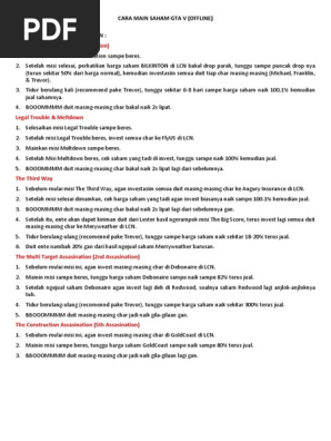 Oct 23, 2020 · Solusinya, kamu bisa bermain saham alias jual beli stock market di mana hasil pengelolaan tersebut akan langsung masuk ke rekening setiap minggunya. Jadi, sekarang sudah jelas ya, kalau cheat GTA 5 PS3 uang banyak sudah nggak berlaku lagi di dalam permainan, geng. Cara Mengaktifkan Kode Cheat GTA 5 PS3