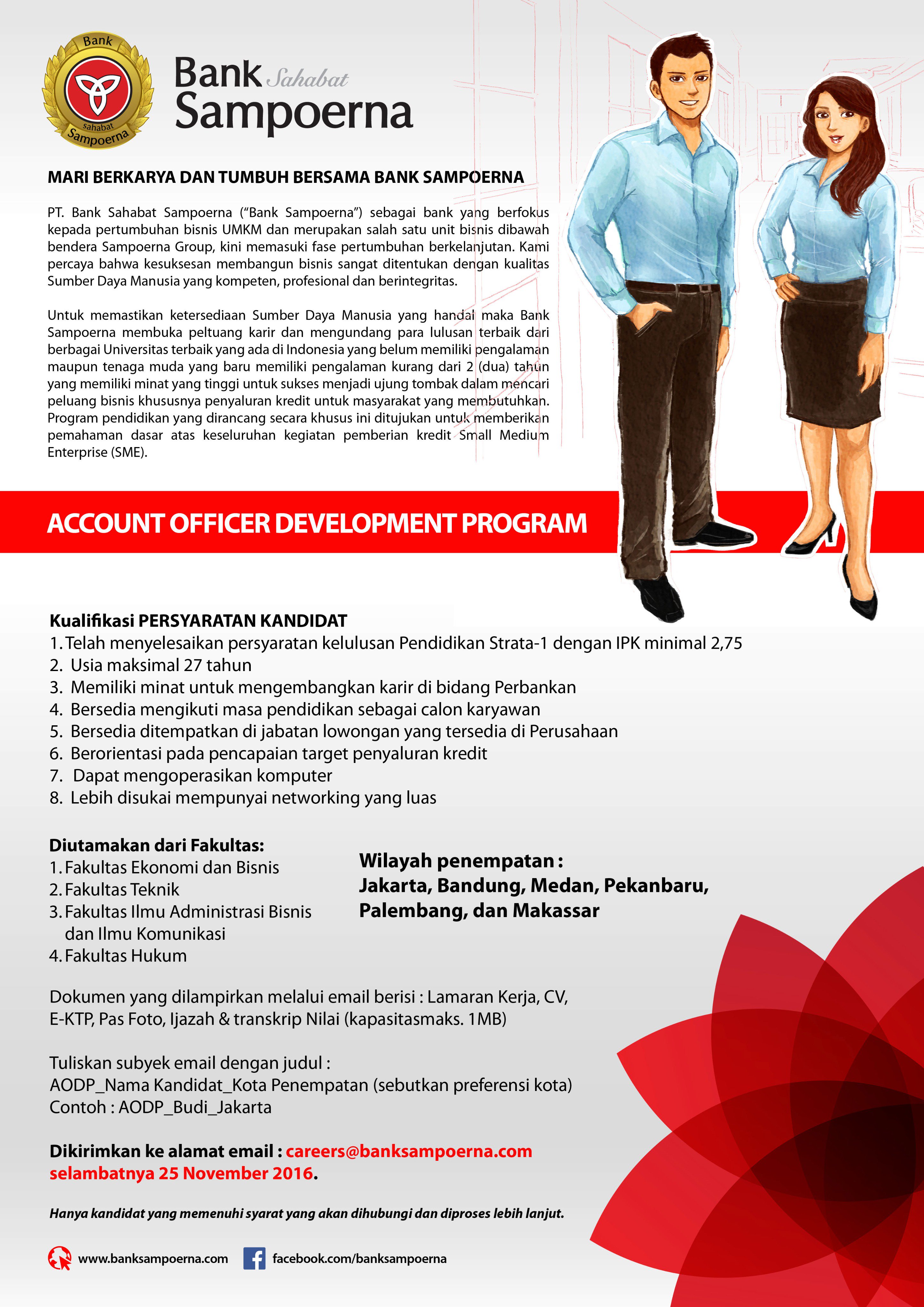 Lowongan Kerja Bank Sahabat Sampoerna... - Info Loker CPNS BUMN PT Bank Sahabat Sampoerna - BSS formerly known as PT Bank Dipo International is committed to break the chain of limitedness due to financial constraints in Indonesia. Bank Sahabat Sampoerna will provide opportunity for every Indonesian to grow and to bring benefits to all mankind.