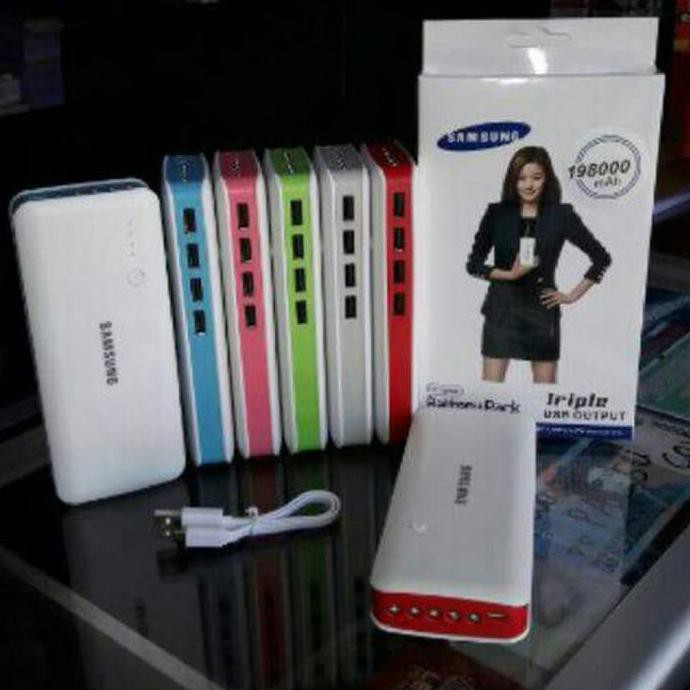 Power bank Samsung 198.000 mah 4 usb Harga Rp250.000 1. Powerbank dan Dus 2. Satu buah kabel konektor usb Kapasitas besar dengan bentuk yang menarik, dengan pilihan warna yang bagus dan bisa menyesuaikan slera para pengunannya. Isi 6 cell Boss Kualitas bagus, warna hijau, Merah, Biru, Ungu Abu Abu