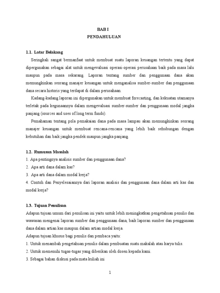 ... Sumber Dan Penggunaan Modal Kerja Analisis Sumber Dan Penggunaan Kas ... Tugas Dan Rangkuman 2da02 3da02 Analisis Sumber Dan Penggunaan Modal Kerja Poin lain yang ditambahkan pada Sumber Dana adalah waktu pendanaan. Beberapa dana digunakan saat tutup buku ( closing ), sementara yang lain mungkin disimpan sebagai escrow untuk membayar pajak atau asuransi. Misalnya, arus kas adalah salah satu sumber dana yang biasanya digunakan untuk pengeluaran di masa depan daripada segera pada tutup buku. View SUMBER(PEMBIAYAAN) DAN PENGGUNAAN DANA [Autosaved].pptx from SASTERA 1100 at Sekolah Menengah Kebangsaan Abdul Jalil. KEWANGAN 4.3 SUMBER(PEMBIAYAAN)& PENGGUNAAN DANA JENIS SUMBER DANA 1. ... ATK), penggandaan, surat menyurat, insentif bagi bendahara dalam rangka penyusu nan laporan BOS dan beaya transportasi dalam rangka mengambil dana ...