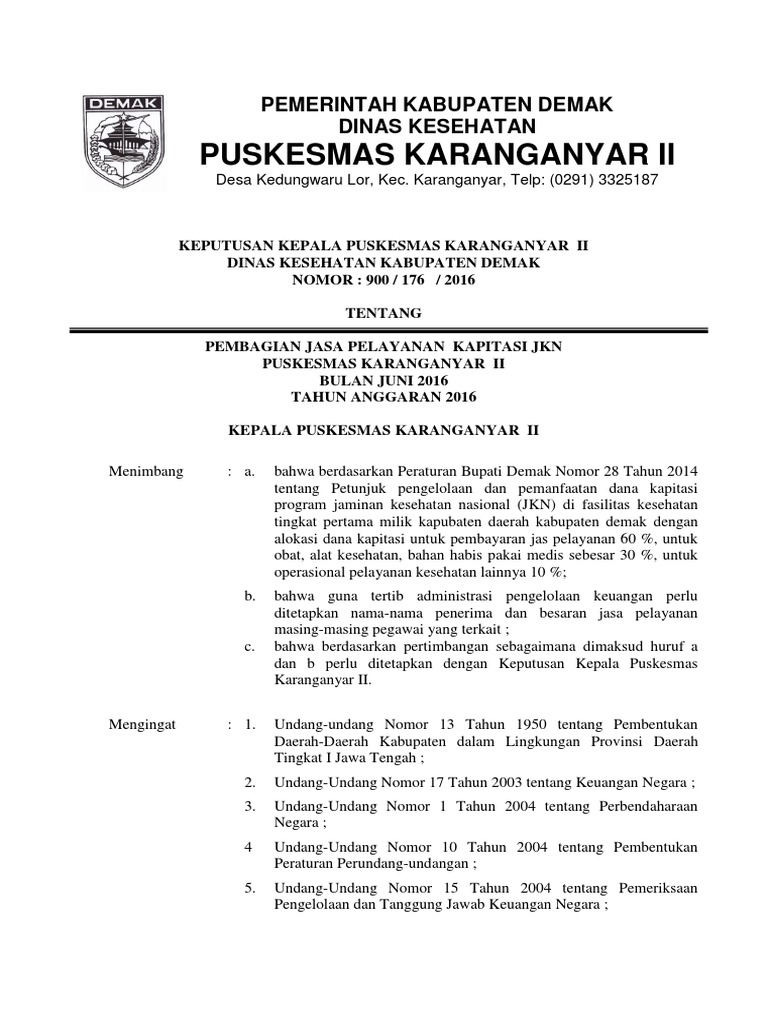utilisasi di Puskesmas mengalami peningkatan. “Cukup agak kerepotan dengan peningkatan kunjungan pasien yang yah cukup drastis yah. Yah sebelum ada BPJS yah biasa-biasa aja, setelah ada BPJS melonjak drastis” (Puskesmas Non BLUD) Pengelolaan dana kapitasi Pengelolaan dana kapitasi erat kaitannya dengan tatakala pencairan dana kapitasi ... May 09, 2014 · Dana Kapitasi ini dibayarkan langsung oleh BPJS Kesehatan kepada Bendaharawan Dana Kapitasi JKN pada Puskesmas. Perpres ini mengatur agar jasa dokter dan tenaga kesehatan lain serta dukungan operasional pelayanan dapat langsung digunakan di Puskesmas Non Badan Layanan Umum Daerah (BLUD).