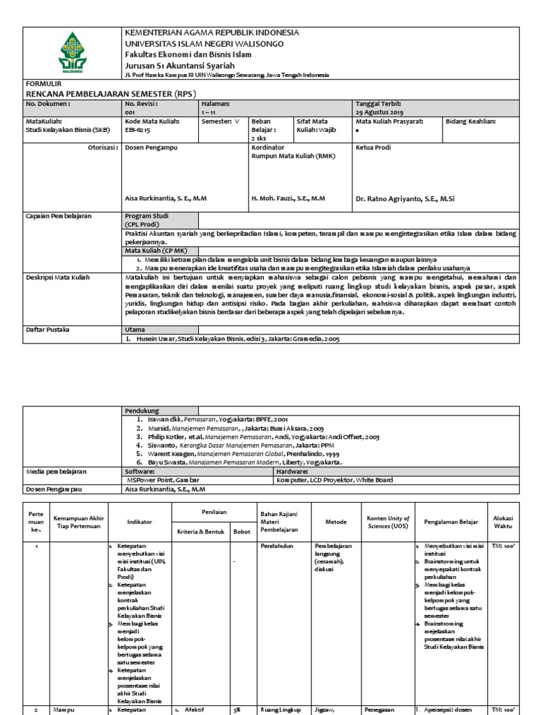 Mar 19, 2017 · RPS MATA KULIAH : STUDI KELAYAKAN BISNIS. Rencana Pembelajaran Semester (RPS) Mata Kuliah : Studi Kelayakan Bisnis. Dosen : Yuliati Basri, MM. Semester : VI (Enam) (1) Minggu ke. (2) Kemampuan akhir yang diharapkan.