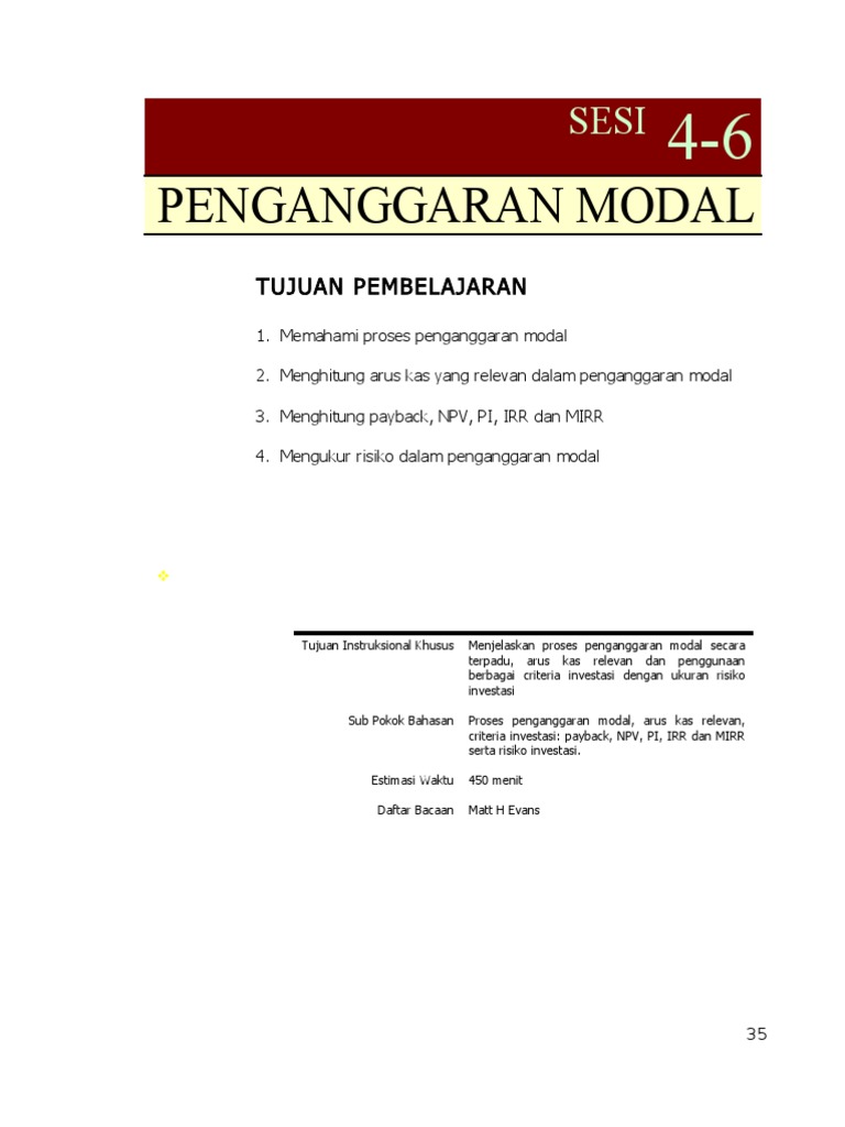 3 Metode Penilaian Investasi - KabarUang Metode penilaian investasi yang pertama adalah metode net present value (NPV). NPV ini bisa dikatakan sebagai selisih antara nilai sekarang dari investasi dengan nilai sekarang dari penerimaan uang kas di masa depan. Dalam perhitungannya, dibutuhkan data-data mengenai perkiraan biaya... 5 Metode Penilaian Investasi oleh Ekonom Internasional... - Pintu Blog Metode ini dianggap sebagai metode penilaian investasi yang paling baik. Pasalnya, investor dapat menghitung nilai arus investasi masa depan di masa sekarang. Namun, kelemahannya, segala sesuatu di masa depan yang diperhitungkan hanyalah asumsi yang tidak bisa dipastikan. PDF Analisis keputusan investasi | METODE PENILAIAN INVESTASI Metode Propability Index (PI). Berdasarkan contoh yang telah dibuat sebelumnya dalam Metode NPV • Metode Internal Rate Return (IRR) merupakan metode penilaian investasi untuk mencari menggunakan metode penilaian investasi. LATIHAN SOAL 2 : PT.A merencanakan sebuah proyek...