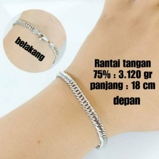 Jual GELANG EMAS PUTIH 750 gelang rantai nory emas asli ... GELANG EMAS PUTIH 750 gelang rantai nory emas asli di Tokopedia ∙ Promo Pengguna Baru ∙ Pasti Ori ∙ Garansi 7 Hari ∙ Cicilan 0% ∙ Kurir Instan.