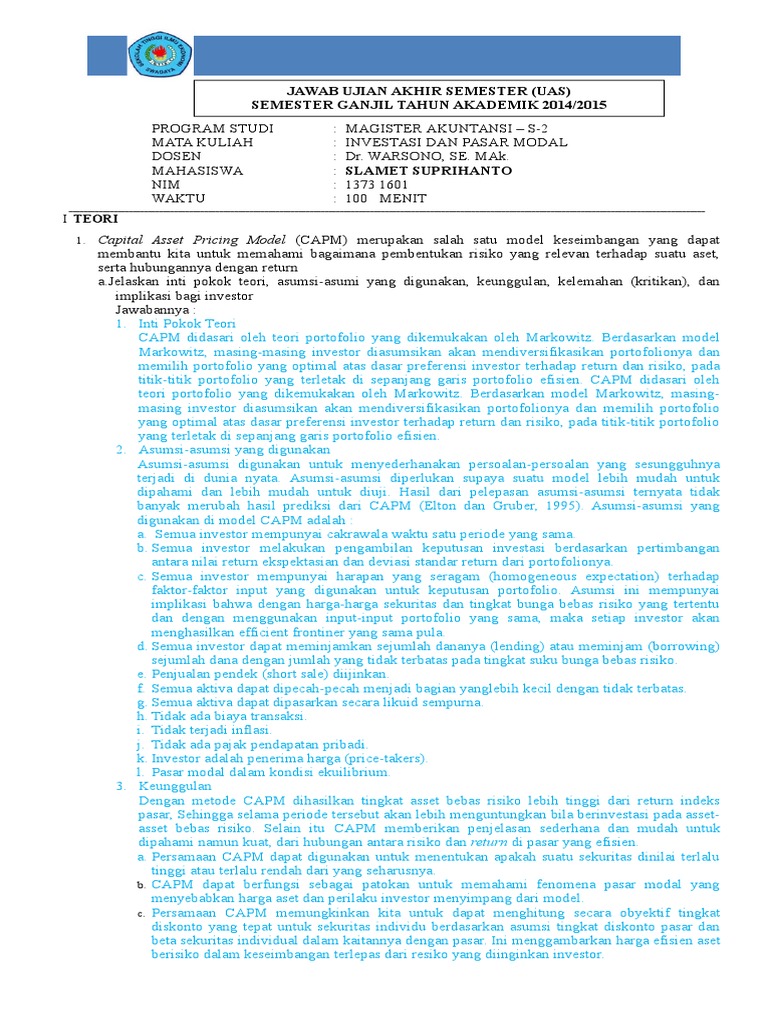 PDF Perpustakaan Nasional RI : Katalog Dalam Terbitan (KDT) Manajemen investasi merupakan serangkaian kegiatan merencanakan, mengimplementasikan, dan mengawasi dana investor individu maupun institusi. Buku manajemen investasi ini merupakan landasan untuk mengelola dana investor. Buku ini bertujuan untuk menjelaskan dan menjabarkan proses manajemen investasi. › uploads › filesApakah Surat Utang Negara itu? Peraturan Menteri Keuangan ... Sebagai Instrumen Investasi Menyediakan alternatif investasi yang relatif bebas risiko gagal bayar dan memberikan peluang bagi investor dan pelaku pasar untuk melakukan diversifikasi portofolionya guna memperkecil risiko investasi. Selain itu, investor SUN memiliki potential capital gain dalam transaksi perdagangan di pasar sekunder SUN tersebut. 35 Ebook Portofolio Dan Investasi Eduardus Tandelilin ... Pdf Manajemen Investasi Di Bank Syari Ah Portofolio Dan Investasi Teori Dan Aplikasi Edisi 1 Pasar Modal Manajemen Portofolio Dan Investasi Eduardus Tandelilin Download Buku Pasar Modal Dan Manajemen Portofolio Mohamad Pensiun Citra Lintas Indonesia Pengukuran Kinerja Menggunakan Bab Ii Teori Portofolio Dan Penilaian Kinerja 2 Pdf Bab Ii ...