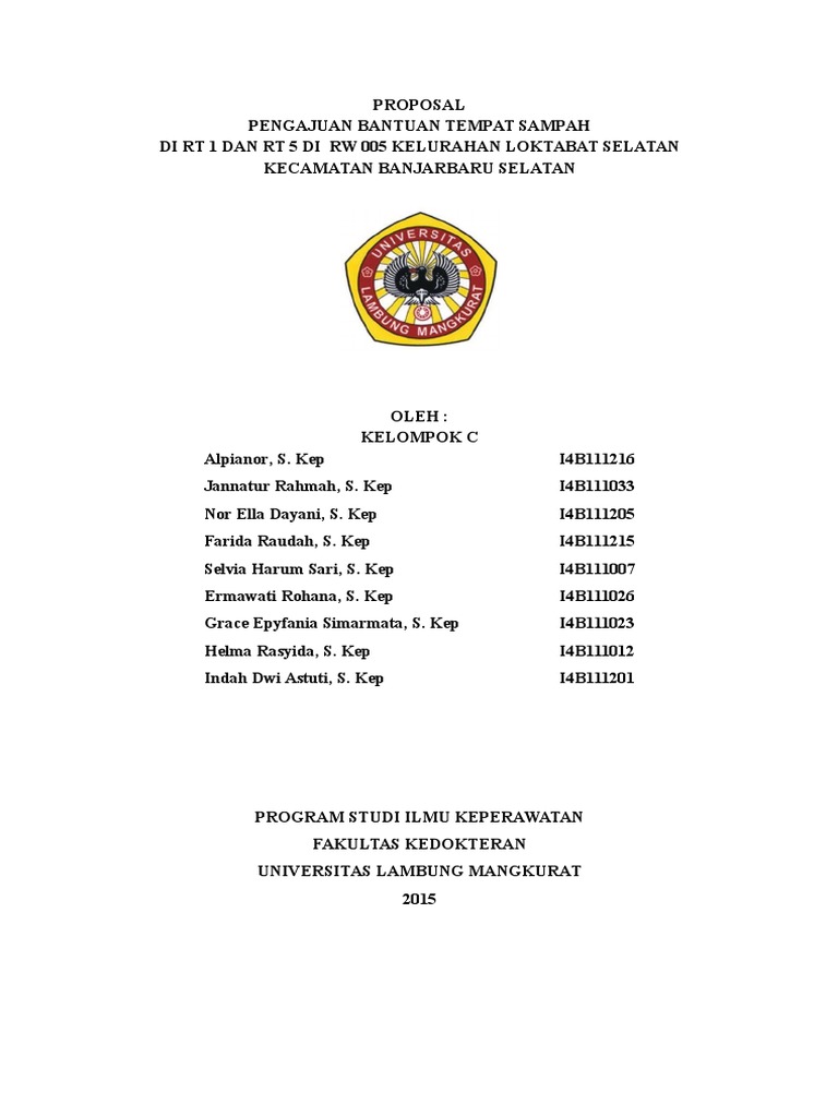 Surat Permohonan Bak Sampah Komunitas Bank Sampah Kabupaten Malang Digerojok Bantuan. Demikian isi dan format penulisan contoh surat permohon kerjasama pengangkutan sampah. Kredit adalah salah satu fasilitas yang memungkinkan seseorang atau sebuah badah usaha untuk meminjam uang untuk keperluan tertentu yang akan dikembalikan dalam jangka waktu yang sudah ditentukan dan ... PDF Proposal Program Kreativitas Mahasiswa Judul Program ... PROPOSAL PROGRAM KREATIVITAS MAHASISWA JUDUL PROGRAM TAS KEPO (Keren dan Populer) dengan Recycling Sampah Plastik untuk Mengurangi Timbulnya Dampak Negatif Sampah Plastik dan Menciptakan Wirausaha Berdikari BIDANG KEGIATAN PKM-K DISUSUN OLEH : Dia Gusti Adi Tiga 12.10.207.00030 2012 Dimas Angga Kusuma 13.10.207.00014 2013