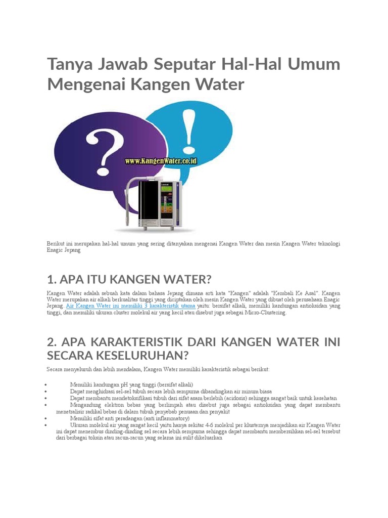 35 Bisnis Kangen Water Dalam Islam - Info Uang Online Feb 05, 2019 · Bisnis kangen water dalam islam. Pernah dengar kangen water. Pernah dengar kangen water. Kangen water atau air kangen adalah air yang dibuat dari hasil proses elektrolisis mesin yang diproduksi oleh perusahaan jepang bernama enagic.