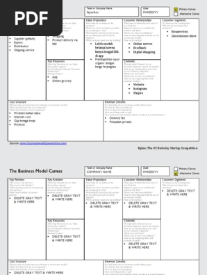 Model bisnis kanvas pdf. Template Kanvas Model Bisnis | Contoh Kanvas Model Bisnis ... Alat menggambar dan membuat diagram yang mudah untuk perencanaan bisnis Bagikan dengan orang lain di tim Anda untuk kolaborasi dan pengeditan grup dengan waktu nyata Ekspor Kanvas Model Bisnis Anda sebagai PDF, SVG, PNG, dll. Untuk diterbitkan, dibagikan, dan dicetak Panduan dan Praktik Terbaik Kajian Business Canvas Model Kewirausahaan Sosial a business canvas model (BMC), a strategic management tool that illustrates how a company creates, deliver, and capture value. There are ve BMC that has been adopted in the social enterprise context. With a descriptive qualitative approach, founded that the differences prot and social enterprise BMC kumpulanjurnal.download › p › download-filekumpulanjurnal.download kumpulanjurnal.download PDF Tesis - Umm APLIKASI BISNIS MODEL KANVAS PADA RUMAH POTONG AYAM (STUDY KASUS RPA PT. DINAMIKA MEGATAMA CITRA) ABSTRAK Oleh Said Wandy Ramadhan (saidwr40@gmail.com) Penelitian ini menganalisis aplikasi model bisnis berbasis kanvas model bisnis di Rumah Potong Ayam di PT. Dinamika Megatama Citra.