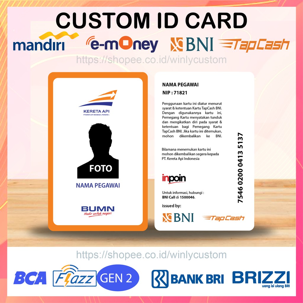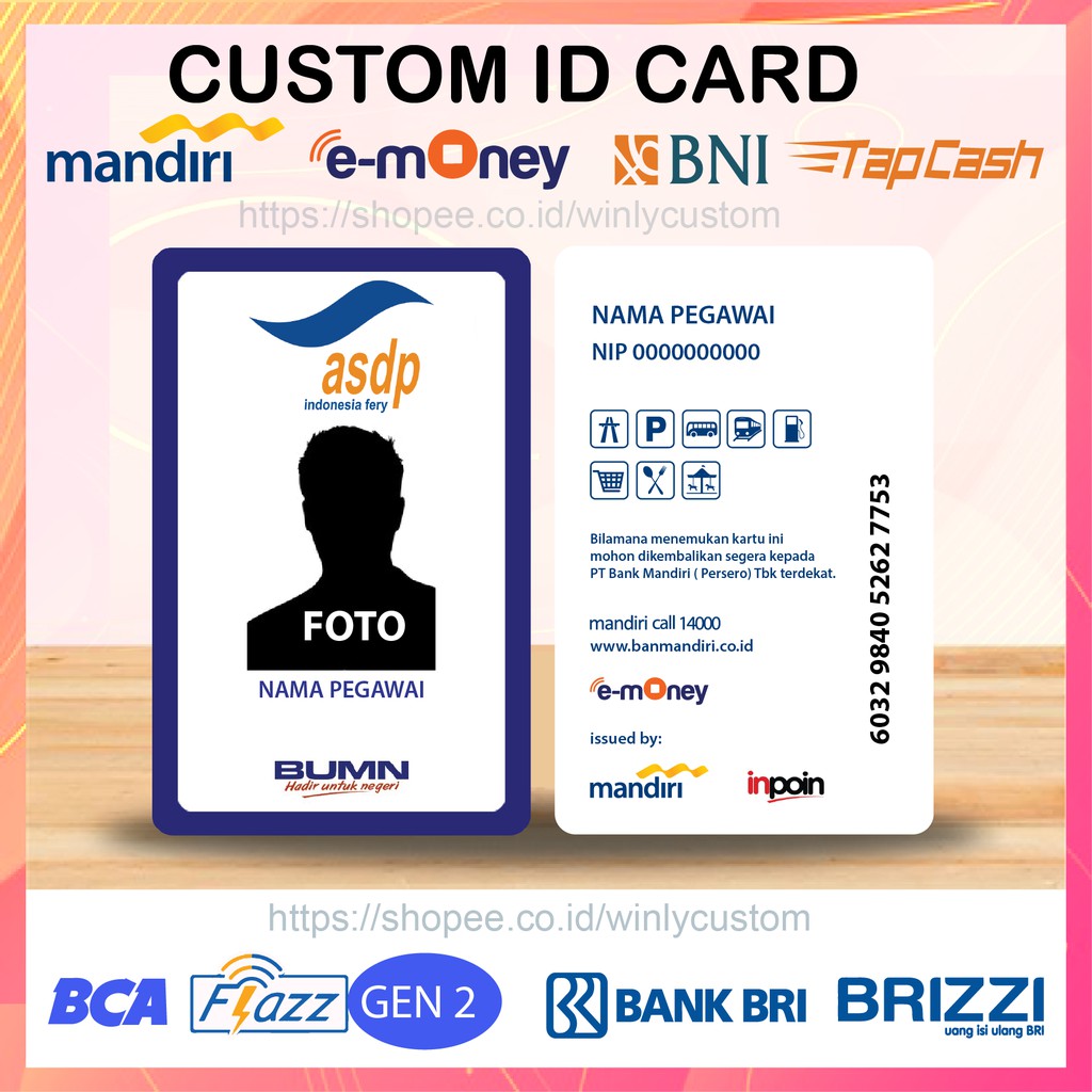 E-Money Emoney Etoll Bri Id Card Pln Kartu Nama Tanda Pengenal -2 Sisi di Hastu Aksesoris | Tokopedia