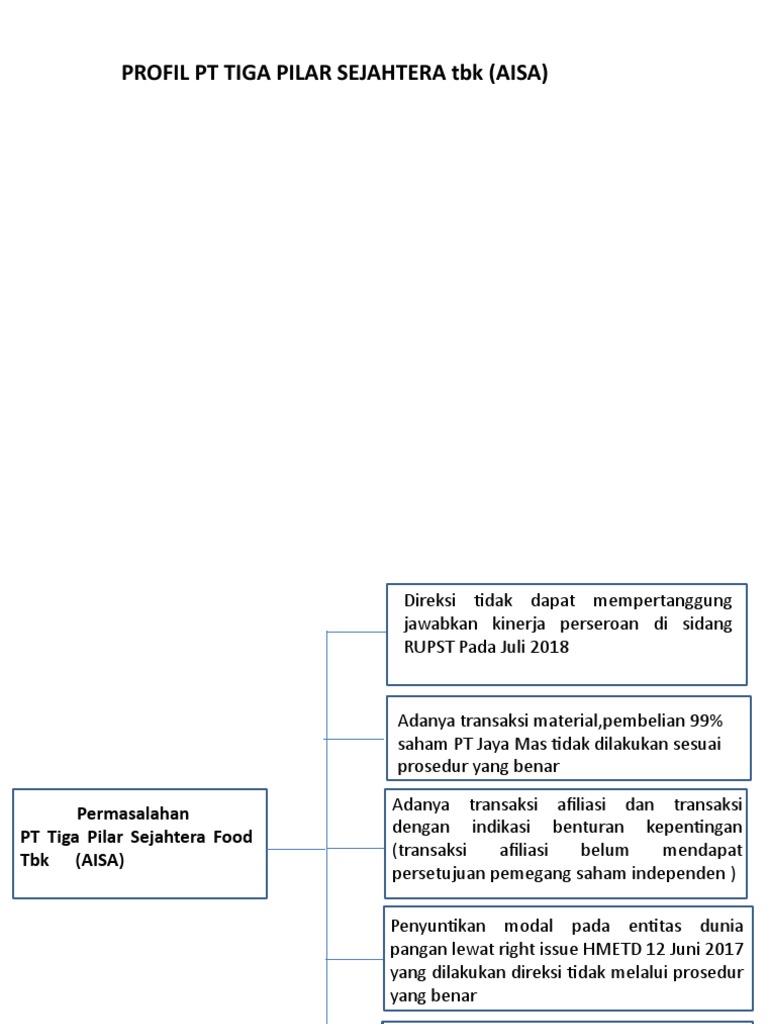 Kasus Saham AISA dan Tata Kelola Perusahaan | BISNIS ... Kasus saham AISA (PT Tiga Pilar Sejahtera Food Tbk) adalah salah satu contoh pentingnya faktor tata kelola perusahaan. Saham AISA Kenapa sangat penting? Karena, selain dapat mempengaruhi proses bisnis perusahaan. Tata kelola perusahaan juga bisa mempengaruhi trend harga saham. Nggak percaya? Lihat saja sendiri contohnya. This is real!!!