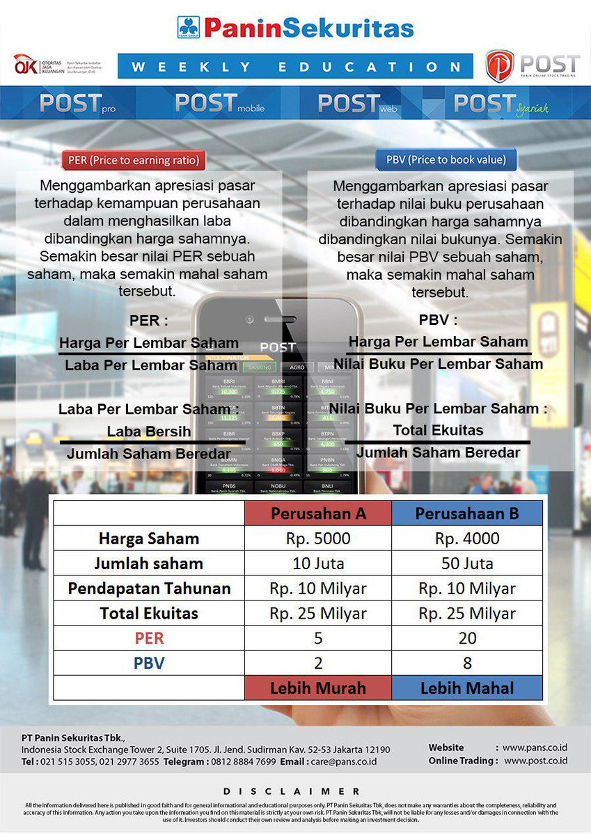 Laba per saham dasar - Cerdasco. Basic earning per share (EPS) atau laba per saham dasar adalah laba bersih yang tersedia bagi pemegang saham biasa dibagi dengan jumlah rata-rata tertimbang saham biasa yang beredar. Jumlah pendapatan yang tersedia untuk [[pemegang saham]] biasa adalah jumlah sisa laba bersih setelah dividen telah dibayarkan. Dengan demikian, rumus untuk menghitung EPS dasar adalah: EPS Dasar […] Pengertian PER (Price Earning Ratio), Lengkap dengan ... Apa itu PER ( Price Earning Ratio )? PER adalah kependekan dari Price Earning Ratio yang mana merupakan rasio antara harga saham dengan laba per lembar saham. PER termasuk salah satu alat analisis fundamental yang bisa kamu gunakan untuk menilai suatu saham.