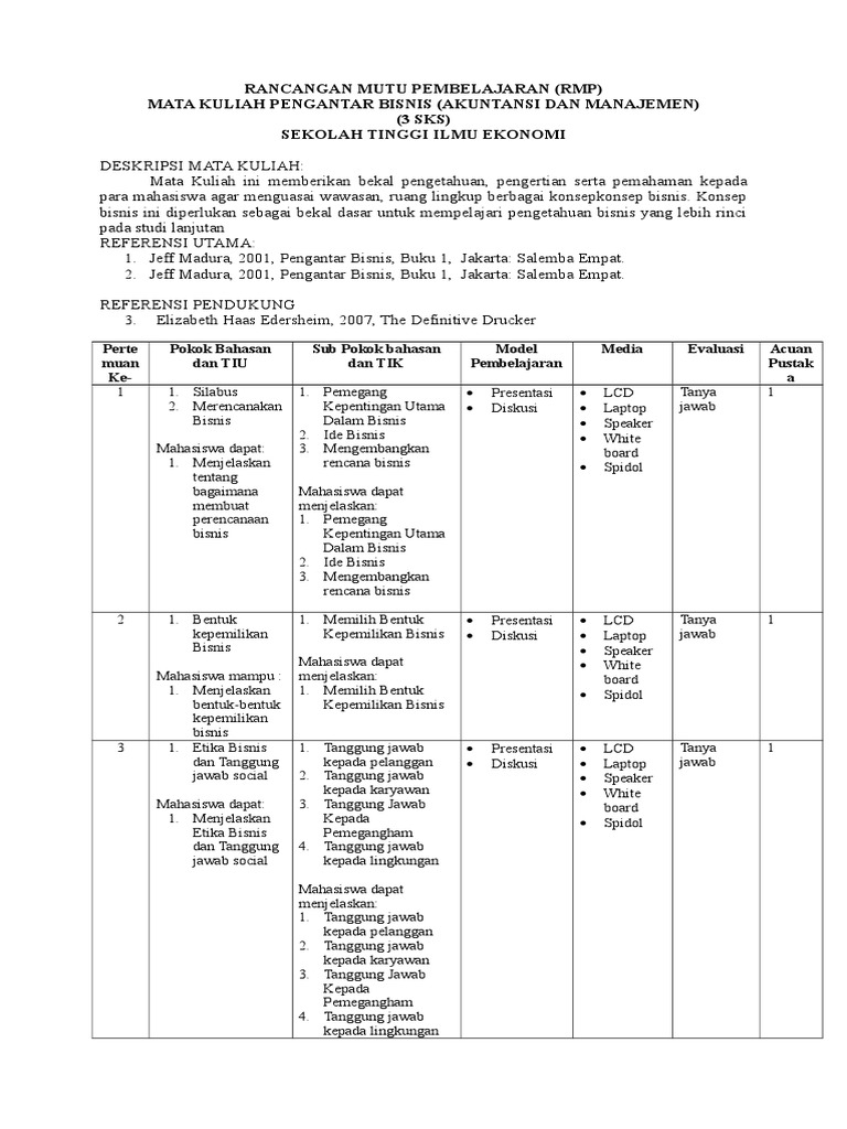 (DOC) PENGANTAR EKONOMI BISNIS | husna farhana - Academia.edu RENCANA PELAKSANAAN PEMBELAJARAN Satuan Pendidikan : SMK Jakarta Pusat 1 Mata Pelajaran : Pengantar Ekonomi dan bisnis Kelas/ Semester : X/1 Program Keahlian : Semua Program Keahlian Materi Pokok : Pelaku - pelaku kegiatan ekonomi Alokasi Waktu: 3 x Pertemuan x 2 jam x 45 menit A; Kompetensi Inti 1; Menghayati dan mengamalkan ajaran agama yang dianutnya.